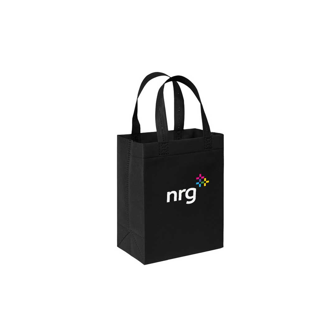 Non-woven proudly made in the USA. High-quality bag with plastic bottom insert. Handles measure 1"W x 12" long. Totes measure 8" W x 5" D x 10" H.